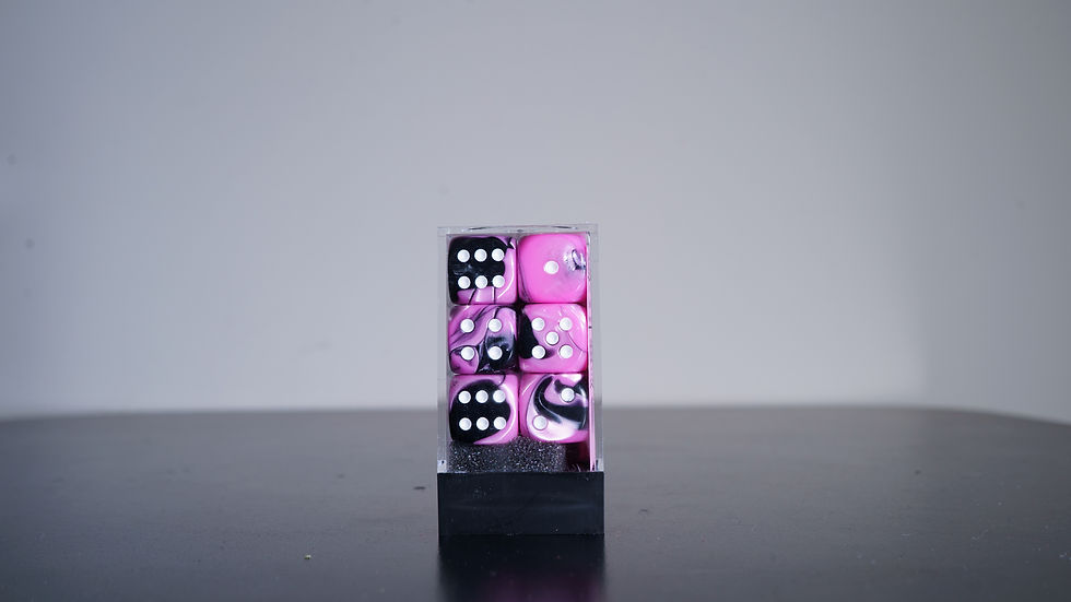 Gemini Black-Pink/white 16mm d6 Dice Block (12 dice)